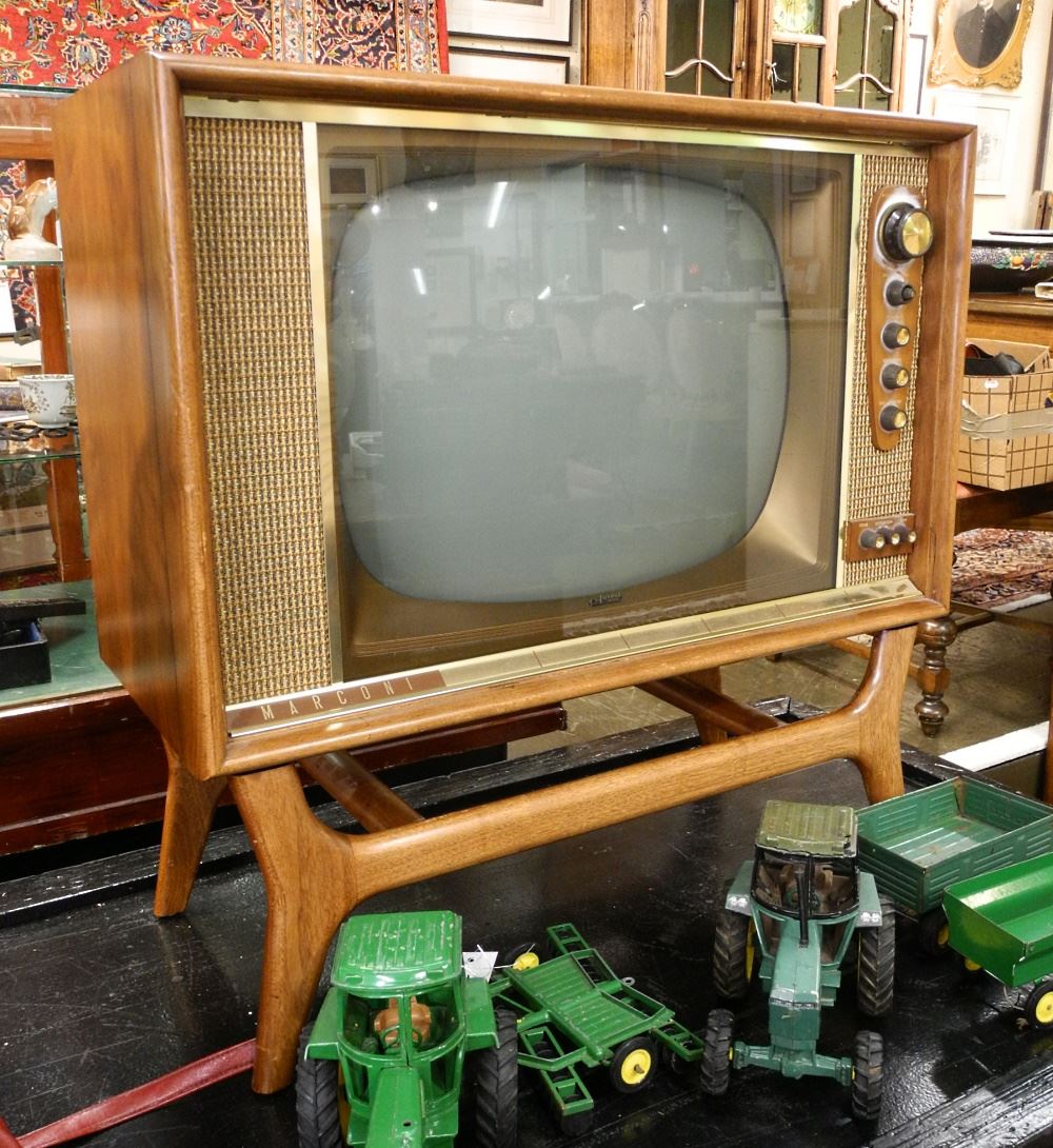 LOT 310 Marconi Television, 30 5/8" Wide. Estimate: $50 - $100 Sold For: $130 Auction Date: Tuesday, July 12 2022 at 6:00 PM