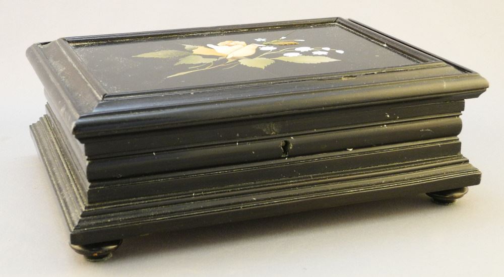 Jewellery Box with Flower Inlay, 8 1/4" Wide.