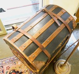 LOT 5 Dome Top Steamer Trunk, With CPR Sticker & Inner Tray. Estimate: $50 - $60 Sold For: $45 Auction Date: Tuesday, January 31 2023 at 6:00 PM