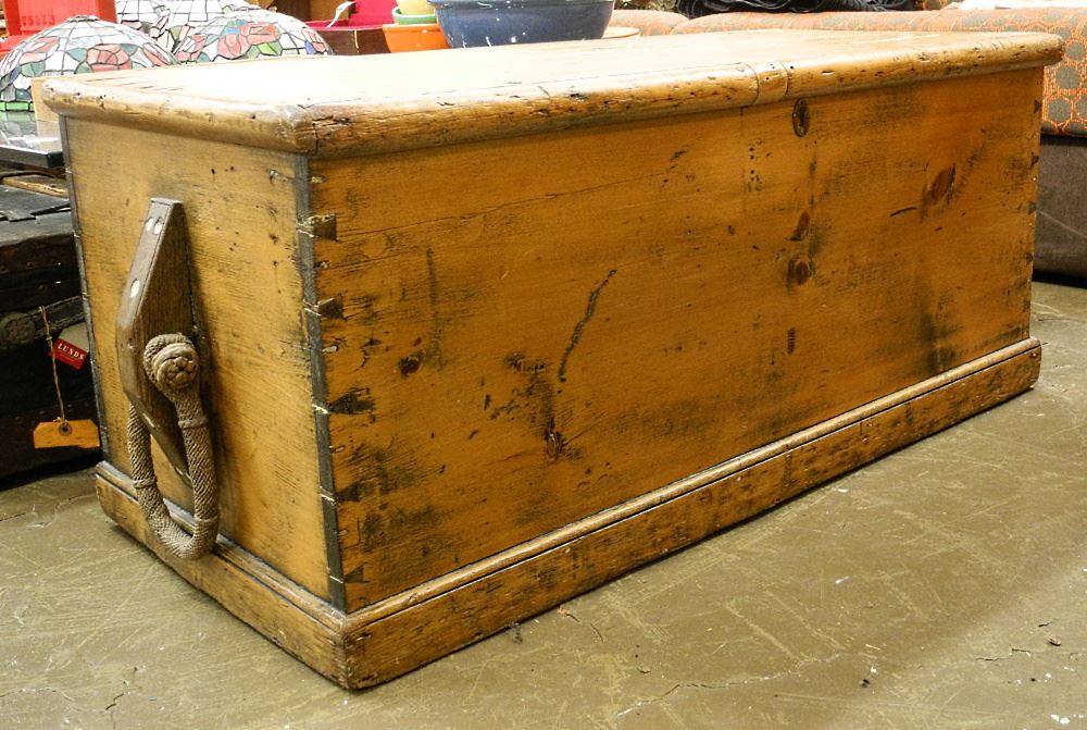 LOT 262 Pine Blanket Box, 41"W. Estimate: $80 - $120 Sold For: $375 Auction Date: Tuesday, March 21 2023 at 4:00 PM