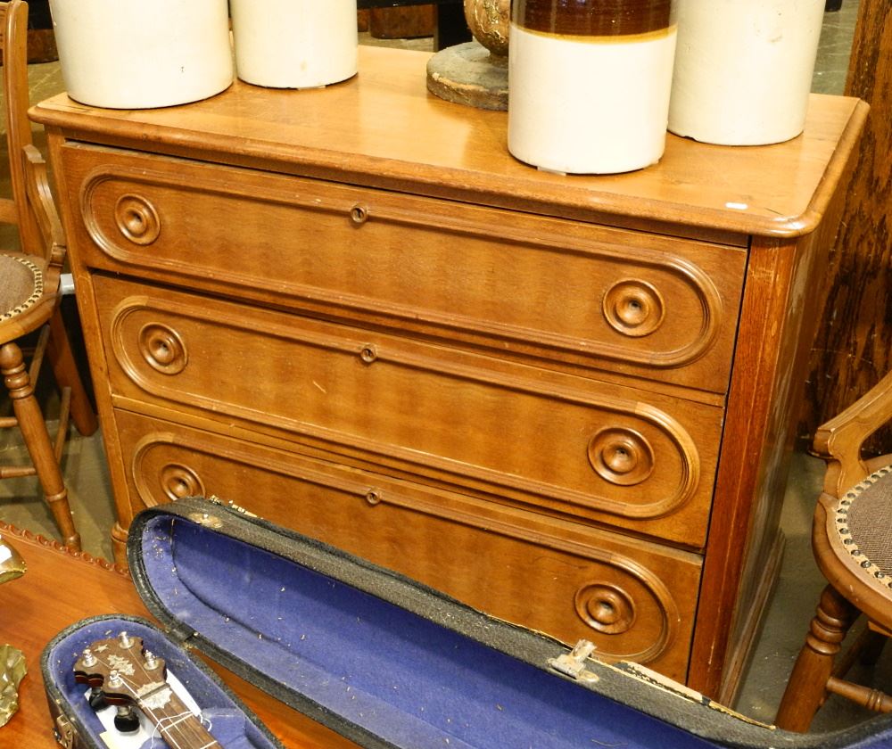 19th Century Walnut 3 Drawer Chest, 42 1/2" wide.