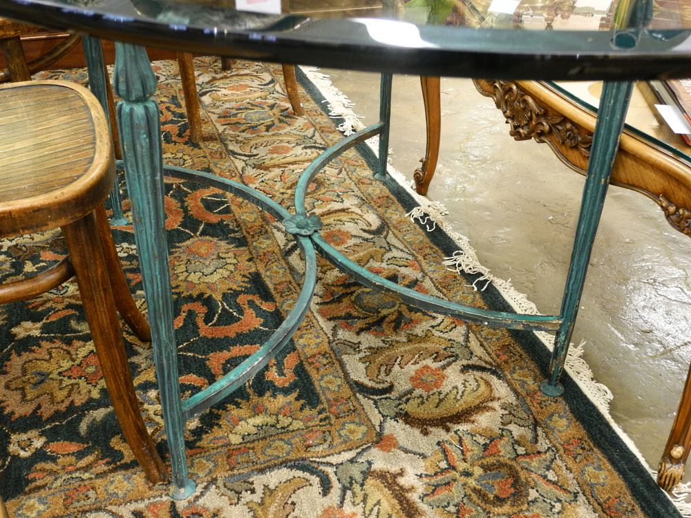 LOT 287 Verdigris Finish Cast Metal Oval Table With Glass Top, 75"l. Estimate: $150 - $300 Sold For: $325 Auction Date: Tuesday, March 21 2023 at 4:00 PM