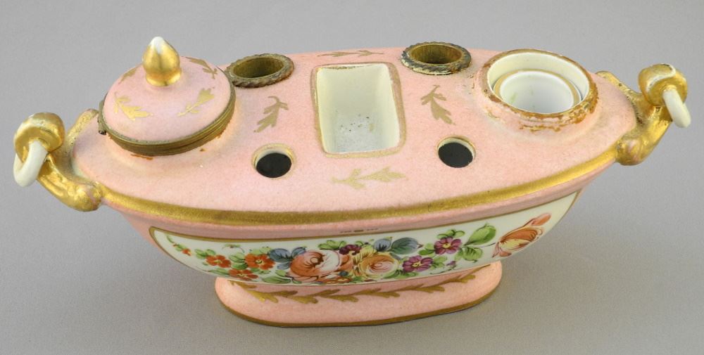 19th century French Porcelain Boat Shaped Desk Set, 9".