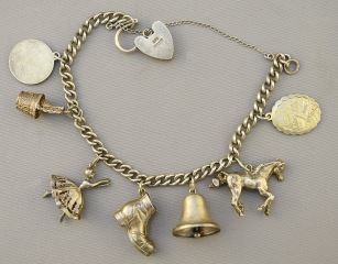 LOT 123 Hallmarked Silver Charm Bracelet with various Charms, 9.2 grams. Estimate: $50 - $60 Auction Date: Tuesday, July 11 2023 at 4:00 PM