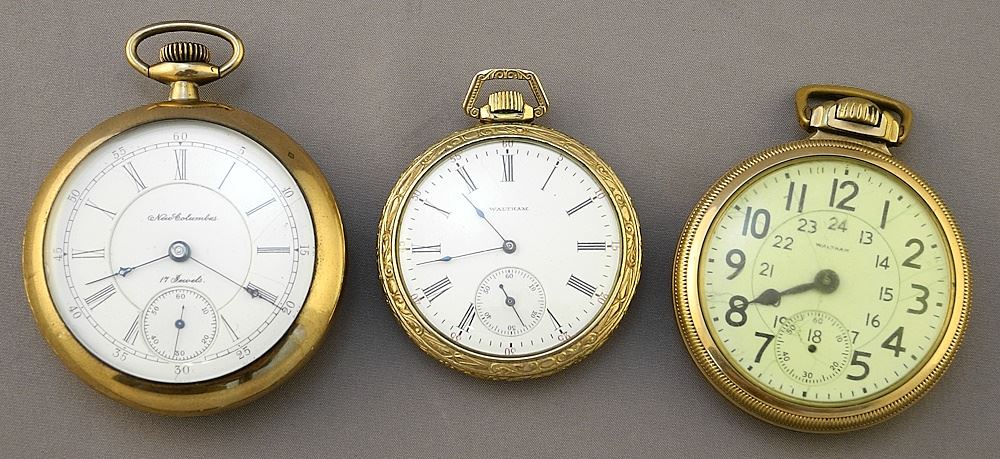 LOT 128 3 Pocket Watches: New Columbia / Waltham / Waltham. Estimate: $60 - $100 Auction Date: Tuesday, July 11 2023 at 4:00 PM