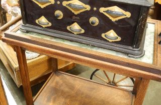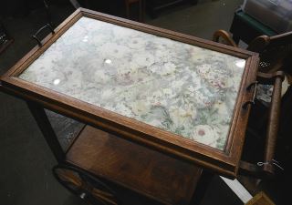 LOT 88 Vintage Oak Tea Trolley, 30"H. Estimate: $60 - $100 Auction Date: Tuesday, July 11 2023 at 4:00 PM