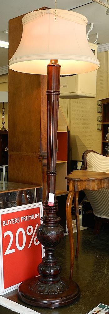 LOT 49 Mahogany Finish Hardwood Floor Lamp, 64"H. Estimate: $80 - $100 Auction Date: Tuesday, July 11 2023 at 4:00 PM