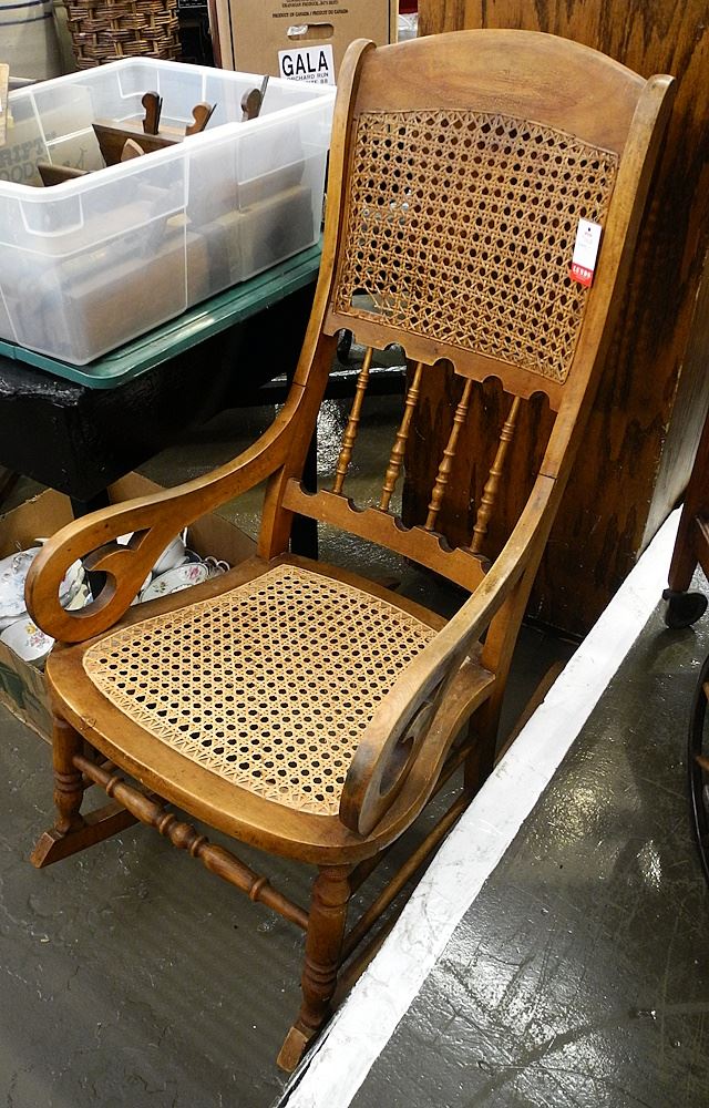 LOT 62 2 Canadiana Maple Cane Inset Rocking Chairs, 36 1/2" and 42 1/2"H. Estimate: $50 - $60 Auction Date: Tuesday, July 11 2023 at 4:00 PM