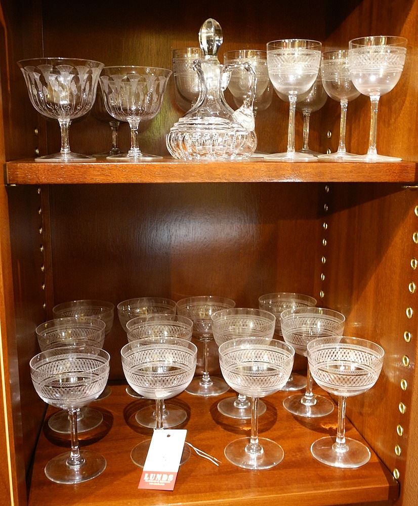LOT 110 Collection of Old Glass Stemware with Decanter. Estimate: $50 - $100 Auction Date: Tuesday, July 11 2023 at 4:00 PM