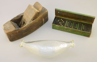 LOT 91 3 Items; Will's Woodbines Dominoes/ "Hygienic" Feeder/ Block Plane. Estimate: $50 - $60 Auction Date: Tuesday, July 11 2023 at 4:00 PM