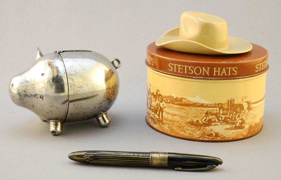LOT 272 Vintage Napier Coin Bank/Stetson With Tin/Sheaffer Fountain Pen with 14 K Nib. Estimate: $50 - $100 Auction Date: Tuesday, July 11 2023 at 4:00 PM