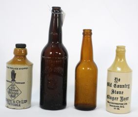 8 Glass & Stoneware Bottles; 2 Silver Spring/ Thorpe & Co./ Campbell's Victoria.