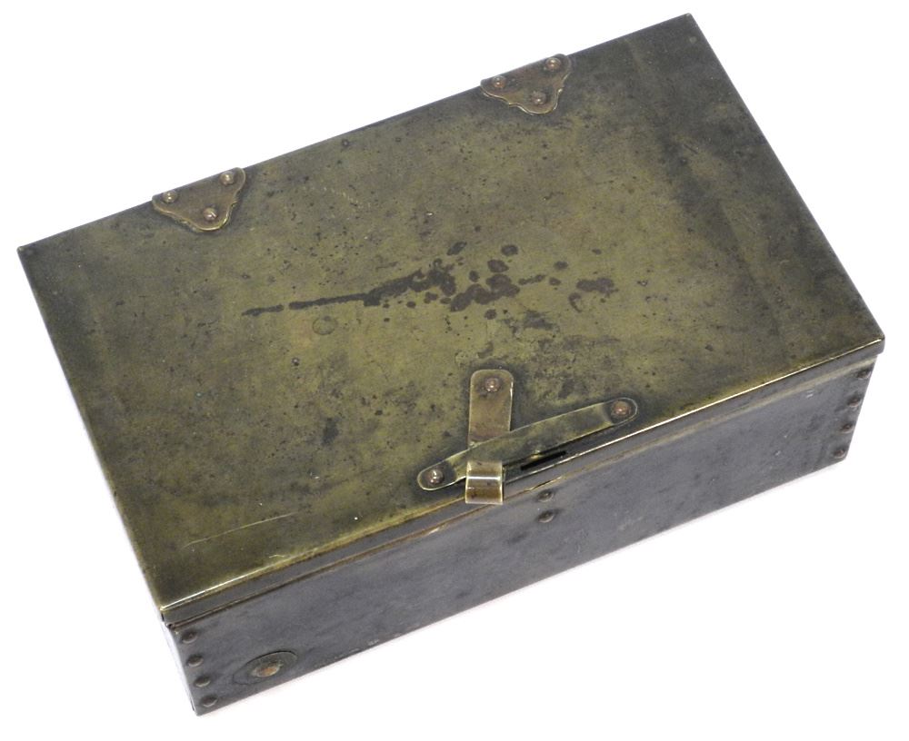 LOT 78 19th Century Brass Lock Box with Locks, 4 1/4 x 12 1/4 x 8". Estimate: $80 - $100 Auction Date: Tuesday, July 11 2023 at 4:00 PM