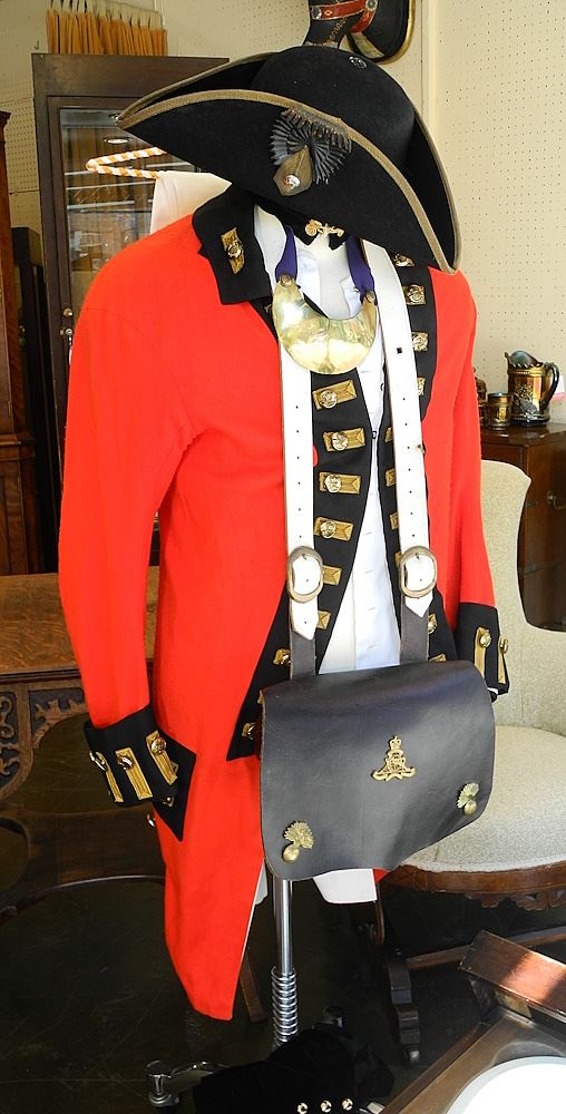 LOT 10 Antique Military Uniform with Gorget and Tricorn Hat. Estimate: $200 - $400 Auction Date: Tuesday, July 11 2023 at 4:00 PM