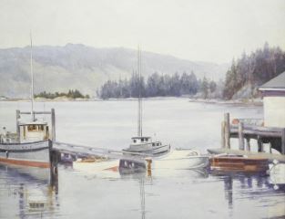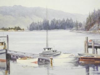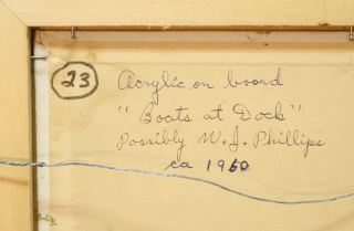 Unsigned Acrylic on Board, 16" x 20", "Boats At Dock".
