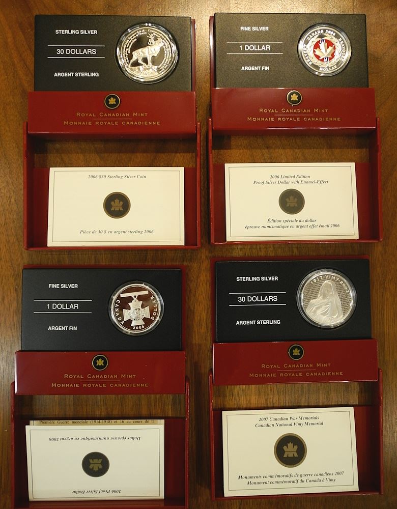 LOT 293 4 Limited Edition Royal Canadian Mint $30 Silver Proof Coins in Original Cases. Estimate: $150 - $200 Sold For: $150 Auction Date: Tuesday, September 12 2023 at 4:00 PM