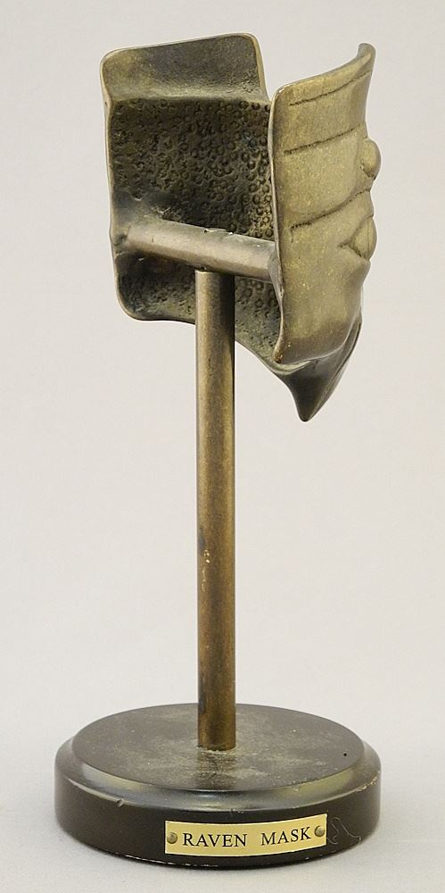 Northwest Coast Style Bronze "Raven Mask" on stand, 8"H.
