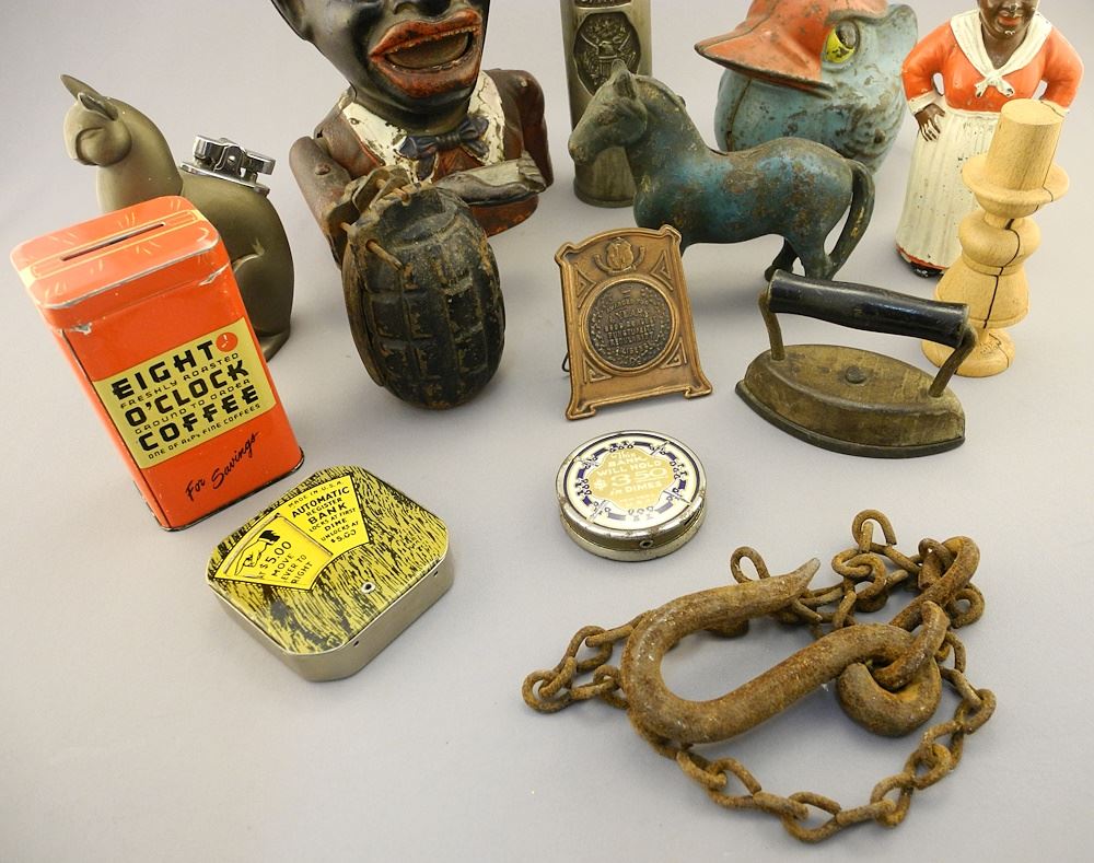 LOT 93 Collection of American Coin Banks and Sundries. Estimate: $120 - $180 Sold For: $130 Auction Date: Tuesday, September 12 2023 at 4:00 PM