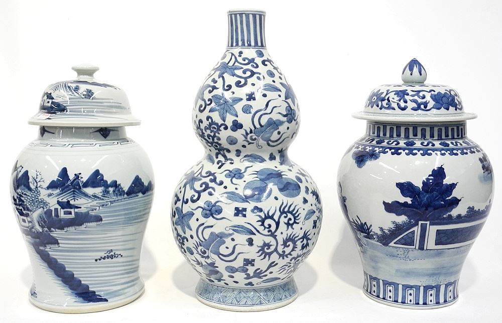 LOT 87 4" Blue and White Chinese Porcelain Vases (3 with Covers), 16 1/4". Estimate: $50 - $100 Sold For: $190 Auction Date: Tuesday, September 12 2023 at 4:00 PM