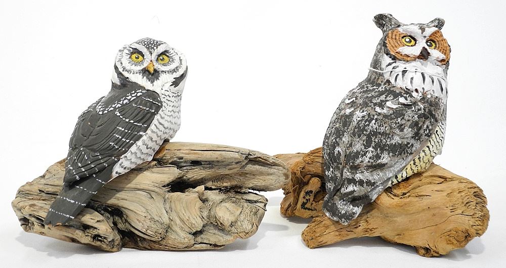 LOT 35 2 Pottery Owl Dioramas Monogrammed EL (Edith Lansdowne), 7 & 6 1/4"H (chip noted). Estimate: $60 - $100 Sold For: $90 Auction Date: Tuesday, September 12 2023 at 4:00 PM