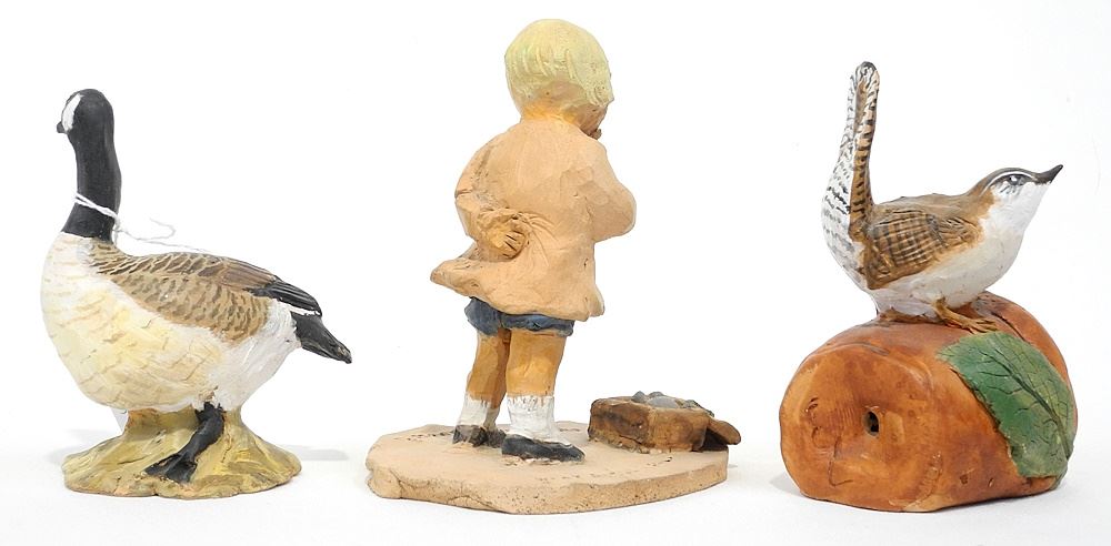 3 Various Pottery Sculptures Monogrammed EL (Edith Lansdowne), (one base restored).