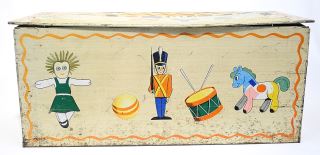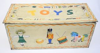 Vintage Tin Litho "Toys" Trunk, 28 1/2"L.