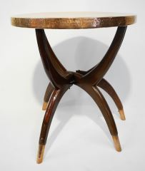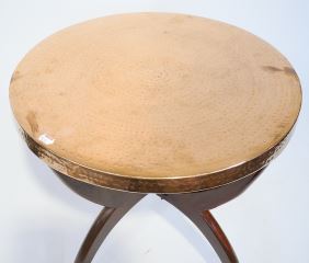 LOT 235 Peened Copper Folding Tray Table, 18 1/2" x 17 1/4" Diameter. Estimate: $50 - $60 Sold For: $190 Auction Date: Tuesday, September 12 2023 at 4:00 PM