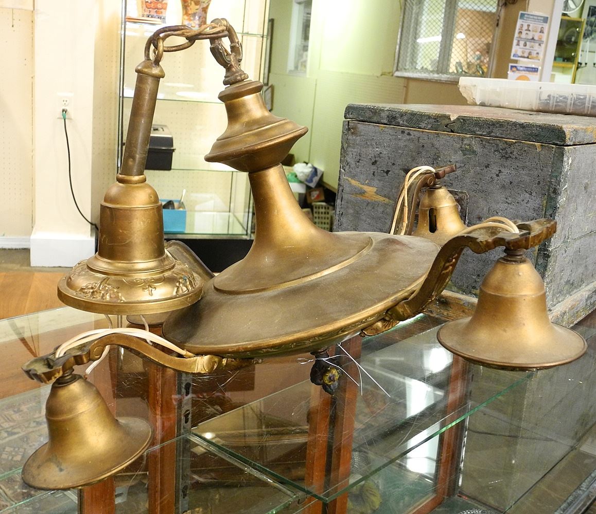 LOT 6 Vintage Brass Pendant Ceiling Fixture, 26 1/2". Estimate: $50 - $60 Sold For: $130 Auction Date: Tuesday, September 12 2023 at 4:00 PM