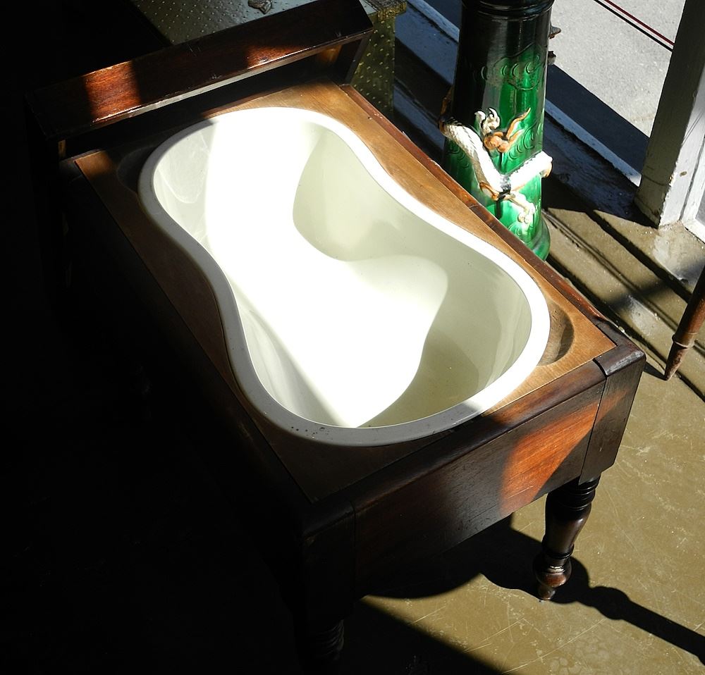 LOT 84 19th Century Mahogany Bidet with Wedgwood Pottery Liner, 23"W. Estimate: $100 - $150 Sold For: $50 Auction Date: Tuesday, September 12 2023 at 4:00 PM