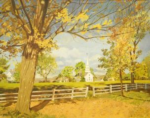 LOT 224 Oil on Board signed Eleanor Oland, 18 x 22", "Country Landscape with Church. Estimate: $75 - $125 Sold For: $35 Auction Date: Tuesday, September 12 2023 at 4:00 PM