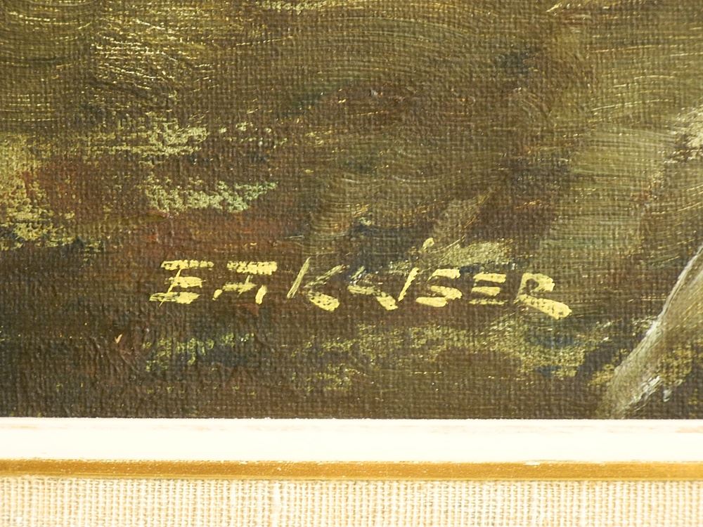 LOT 109 Oil on Canvas Signed E.F. Kaiser, 23 1/8" x 35", "Street Scene with Carriage". Estimate: $80 - $120 Sold For: $180 Auction Date: Tuesday, September 12 2023 at 4:00 PM