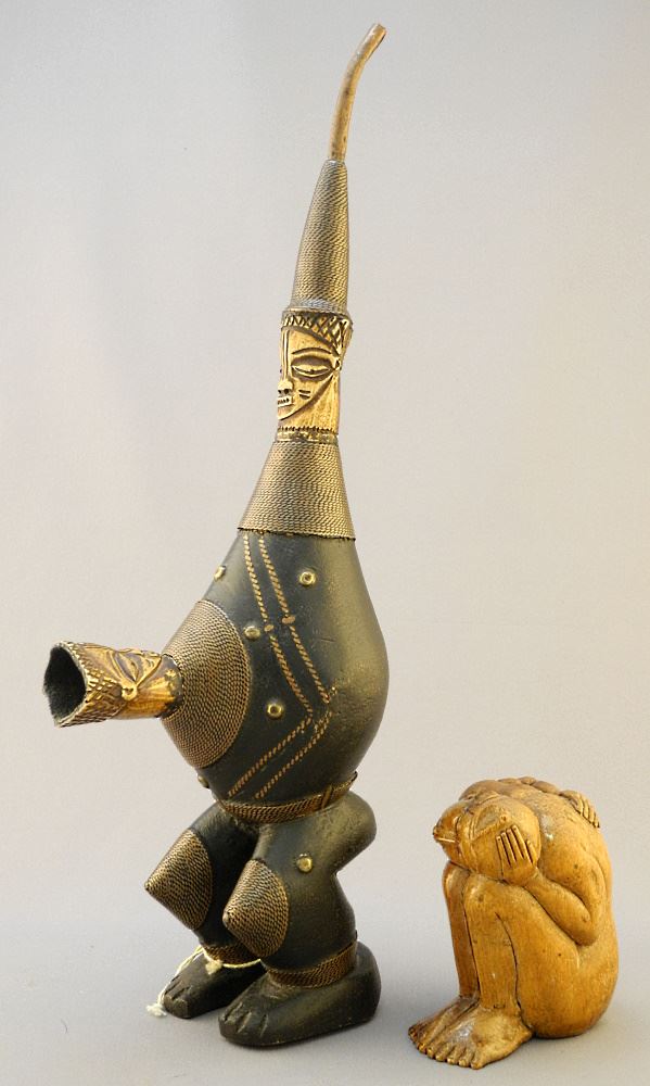 LOT 89 2 Tourist Art Carvings: African Pipe & Japanese Figure 14 1/2" & 3 1/2"L. Estimate: $50 - $60 Sold For: $20 Auction Date: Tuesday, September 12 2023 at 4:00 PM