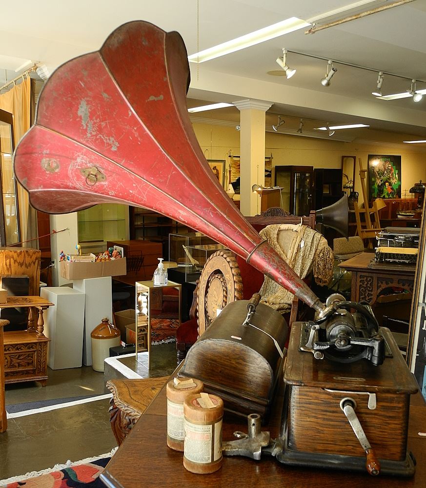 Edison Home Phonograph with Horn and Cylinder.