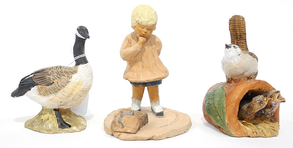 LOT 158 3 Various Pottery Sculptures Monogrammed EL (Edith Lansdowne), (one base restored). Estimate: $60 - $100 Sold For: $20 Auction Date: Tuesday, September 12 2023 at 4:00 PM