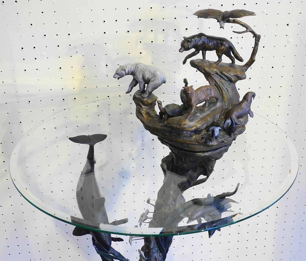 LOT 35 Franklin Mint Bronze Table by Steven Lord, 35 1/4 x 19 1/2 x 19 1/2", #567/9500. Estimate: $500 - $700 Sold For: $375 Auction Date: Tuesday, November 07 2023 at 4:00 PM