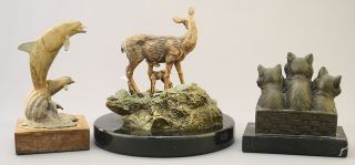 LOT 124 Cold Painted Bronze Sculpture signed Ron Lee, 6 1/8 x 6 1/2" Diam, "Bliss #39/950, & Dolphin & Kitte Estimate: $60 - $100 Sold For: $60 Auction Date: Tuesday, November 07 2023 at 4:00 PM