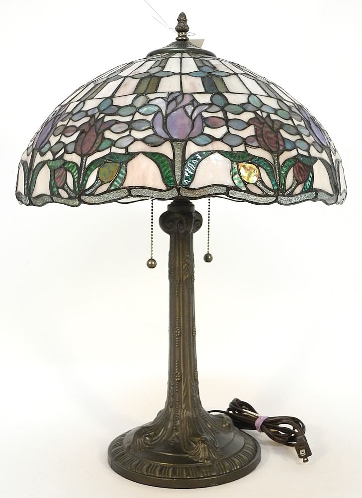 LOT 28 Leaded Glass Table Lamp with Cast Metal Base, 22 1/4"TH. Estimate: $50 - $100 Sold For: $225 Auction Date: Tuesday, November 07 2023 at 4:00 PM