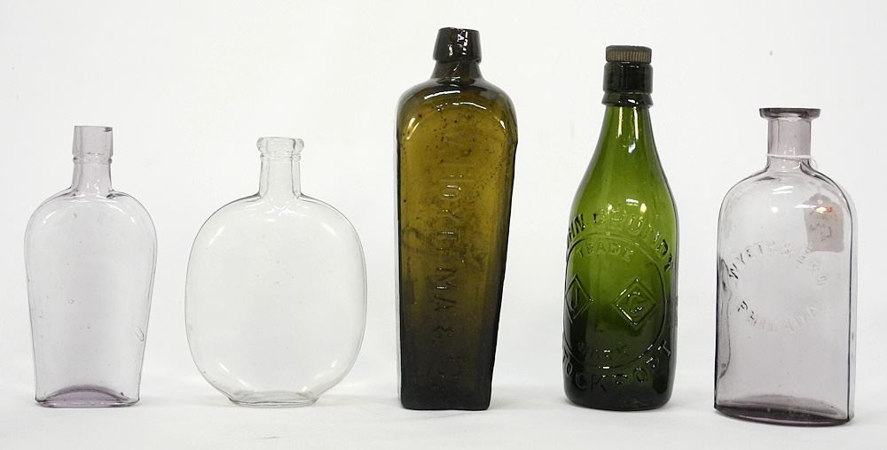 LOT 170 Collection of Various Antique Bottles and Stamp Stand. Estimate: $50 - $100 Sold For: $60 Auction Date: Tuesday, November 07 2023 at 4:00 PM
