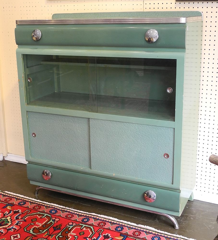 Vintage Turquoise Arborite Kitchen Hutch, 43 1/4"H.