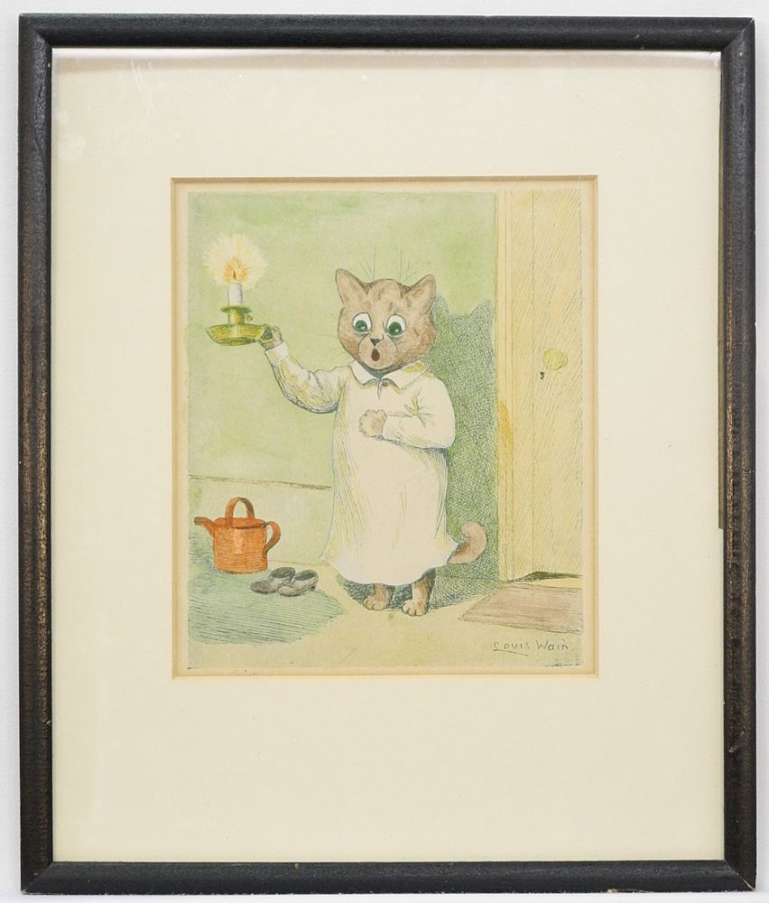 Louis Wain Colour Print, "Cat & Candle", 7 x 6".