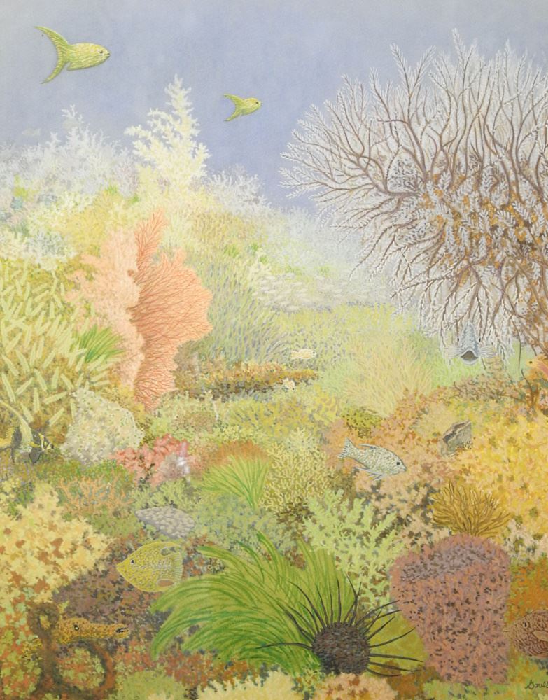 Watercolour signed Gould, 23 1/4" x 18 1/4", Tropical Fish.