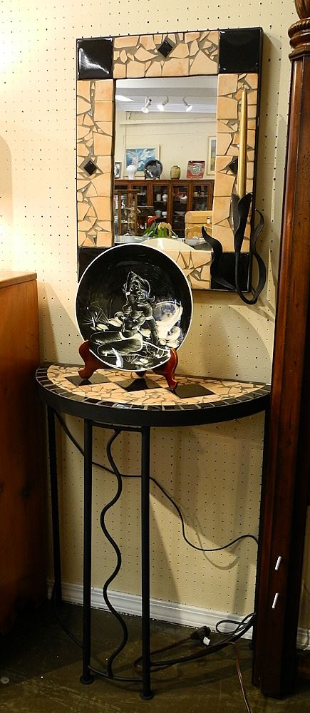 Contemporary Tile Inset Console Table and Mirror, 24 3/8"H.