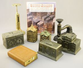 Collection of Architectural Coin Banks / Postal Scale / Stapler, 2 1/8 - 7 1/4"H.