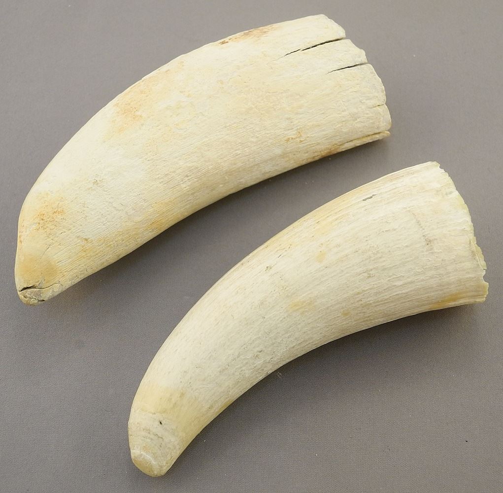 LOT 254 2 Sperm Whale Teeth, 4 & 4 3/4"L. NO EXPORT. Estimate: $80 - $120 Sold For: $140 Auction Date: Tuesday, November 07 2023 at 4:00 PM