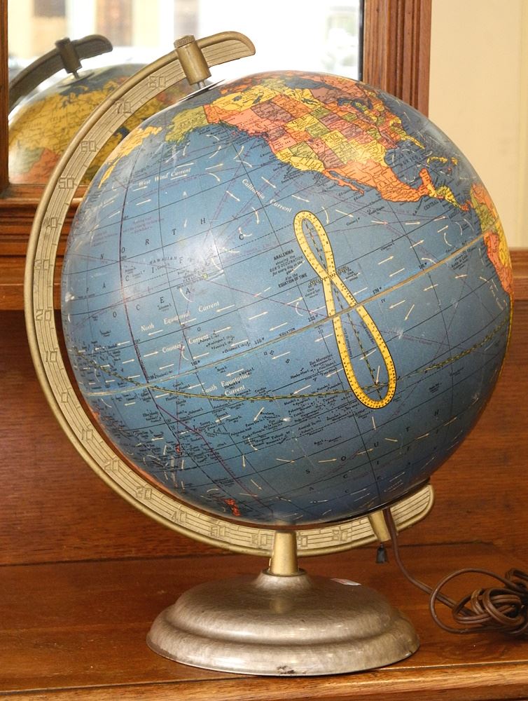 LOT 38 George F. Cram Co. 10" Diameter Illuminated Terrestrial Globe. Estimate: $50 - $60 Sold For: $35 Auction Date: Tuesday, November 07 2023 at 4:00 PM