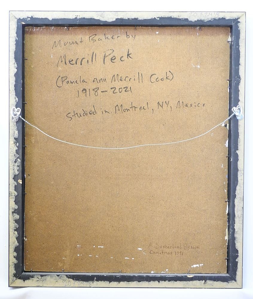 LOT 91 Oil on Masonite signed Merrill Peck "Mount Baker". Estimate: $100 - $200 Auction Date: Tuesday, November 07 2023 at 4:00 PM