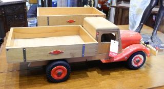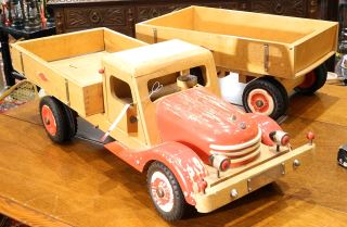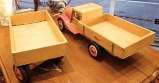 Bigge-Style Wooden Dump Truck & Trailer, 25 1/2" & 18 3/4"L.