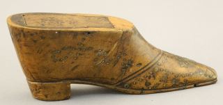 LOT 67 Pique Work Treen Snuff Box, 4 1/2"L, Shoe Shaped (as found). Estimate: $50 - $70 Sold For: $70 Auction Date: Tuesday, January 23 2024 at 4:00 PM