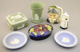 LOT 121 Collection of English Ceramic Wares: Moorcroft / Worcester / Wedgewood / Doulton (7pcs). Estimate: $50 - $100 Sold For: $80 Auction Date: Tuesday, January 23 2024 at 4:00 PM