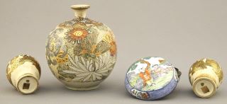 LOT 270 Pair of Satsuma Vases, 1 3/4", Enamel Patch Box, 2 1/8", etc. Estimate: $50 - $100 Sold For: $80 Auction Date: Tuesday, January 23 2024 at 4:00 PM
